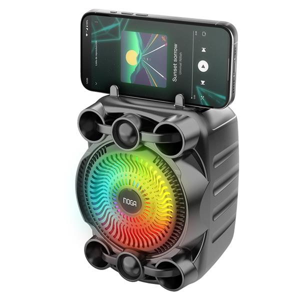 Disfrutá de la fiesta en cualquier lugar con el Parlante Inalámbrico BT NG-BT530. Este dispositivo combina sonido de calidad y efectos lumínicos para crear el ambiente perfecto en tus reuniones. Su potencia de salida de 5W asegura que la música suene fuerte y clara, mientras que su tecnología inalámbrica BT 5.4 te permite conectarlo fácilmente a tu smartphone (incluye soporte), tablet u otros dispositivos.